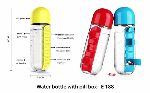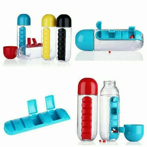 7 days Medicine Water Bottle with Pill Holder, Portable Inserted Pill Reminder 600 ml Bottle (Pack of 1, Multicolor, Plastic)