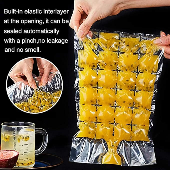 • Design: Self-sealing valve , liquid won’t leak from the bag in the freezer, prevent ice cube from absorbing peculiar smell or freezer odors