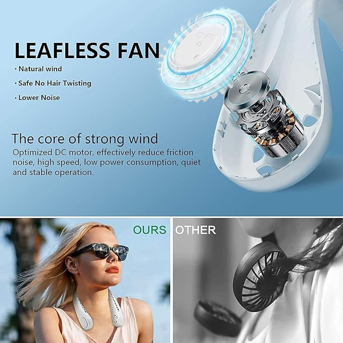 USB Portable Neck Fan, with Strong Airflow, Portable Cooling Fan Speed Adjustable